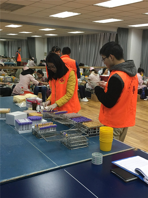 在大家的积极参与下,血液中心预备的血袋在2日上午9:30分就全部用完了,所以今年我校的无偿献血活动只得提前结束,许多师生因为这次没能参加献血而感到遗憾。据统计,在本次的无偿献血活动中,我校共有504名师生和3名食堂员工参加了无偿献血。