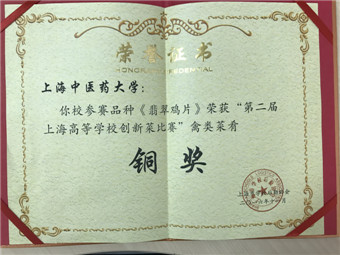 2016年11月12日,上海市学校后勤协会餐饮管理专业委员会在上海大学举办了第二届上海高校创新菜肴比赛。来自上海37所高校的111个菜品,经过专业评审和学生评选相结合的评判,最终评选出禽类菜肴和最具人气菜肴金、银、铜奖共计68个。我校学生食堂黄友银的参赛菜品《翡翠鸡片》,荣辉禽类菜肴铜奖,菜品已被收录于《上海高校学生食堂创新食谱集锦》中。