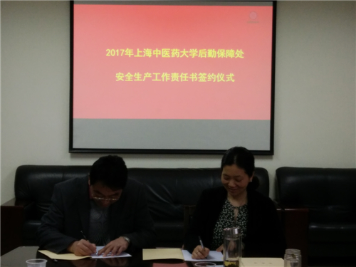 2017年4月7日上午,后勤保障处召开部门负责人会议,传达学校安全生产工作会议精神,并举行了2017年安全生产工作责任书签订仪式。 签约仪式上,后勤保障处处长缪晓代表处室与膳食管理服务科、运输管理服务科、水电维修管理服务科等各下属科室负责人分别签订了安全生产工作责任书。