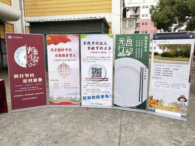 “光盘行动”倡导的是一种科学、理性、健康的生活方式,学校在每个食堂的电子屏、告示栏、窗口醒目位置处张贴特色宣传标语、海报及提示牌等,通过OA公告栏、微信公众号等平台向全校师生发布“厉行节约,反对浪费”倡议书,号召全体师生将“光盘”切实落实到行动中,避免“舌尖上的浪费”,营造“爱惜粮食,文明用餐”的良好氛围。