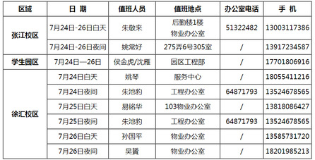 防汛防台后勤值班联系人手机:王卫春13601800840(水电维修科-防汛报修)