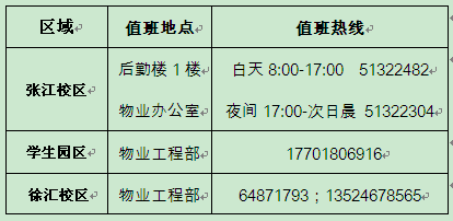 防汛防台后勤值班联系人手机:王卫春13601800840 (水电维修科-防汛报修)