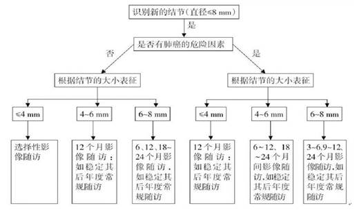 胸部CT随访观察,根据是否有肺癌的危险因素,制定影像随访方案。