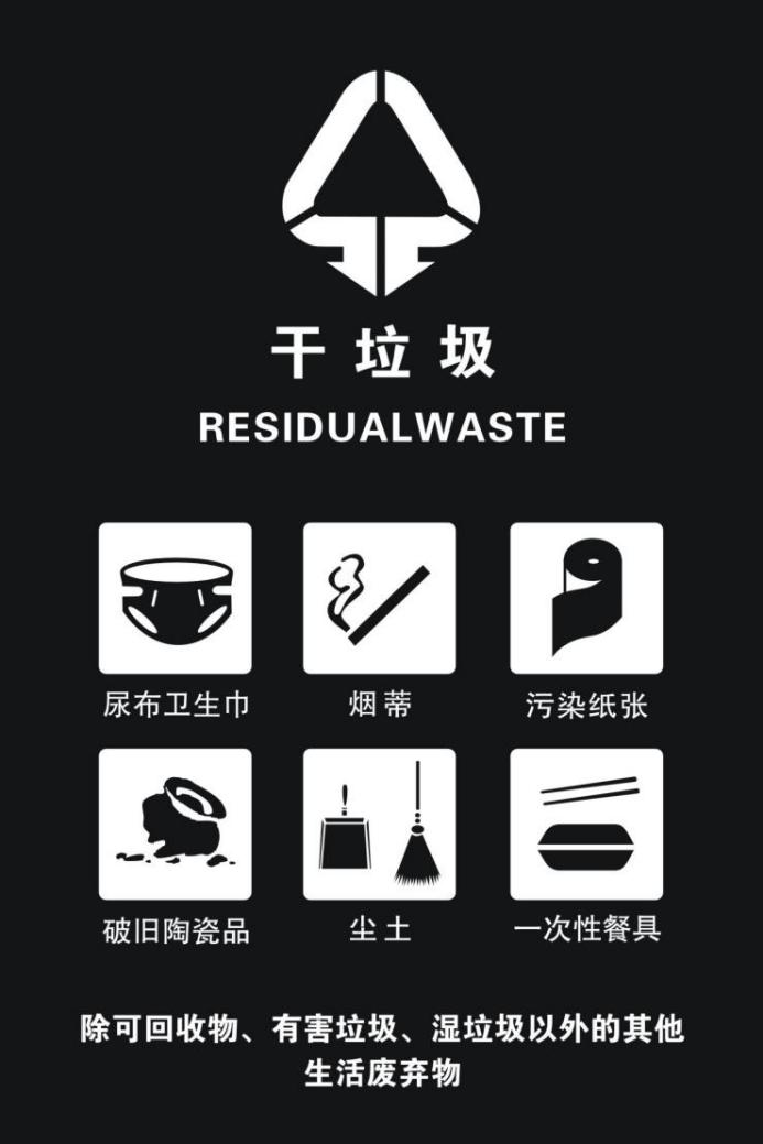 干垃圾是指除可回收物、有害垃圾、湿垃圾以外的生活废弃物。