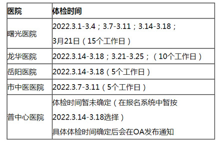 附件1:各医院体检时间