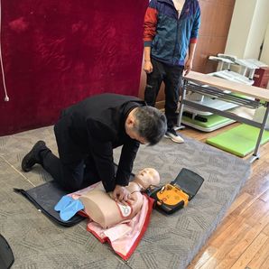 本次课程邀请了上海市爱众应急救助促进中心的老师以理论结合实操的授课方式,讲解心肺复苏(CPR)的步骤要点和自动体外除颤器(AED)的使用规范。