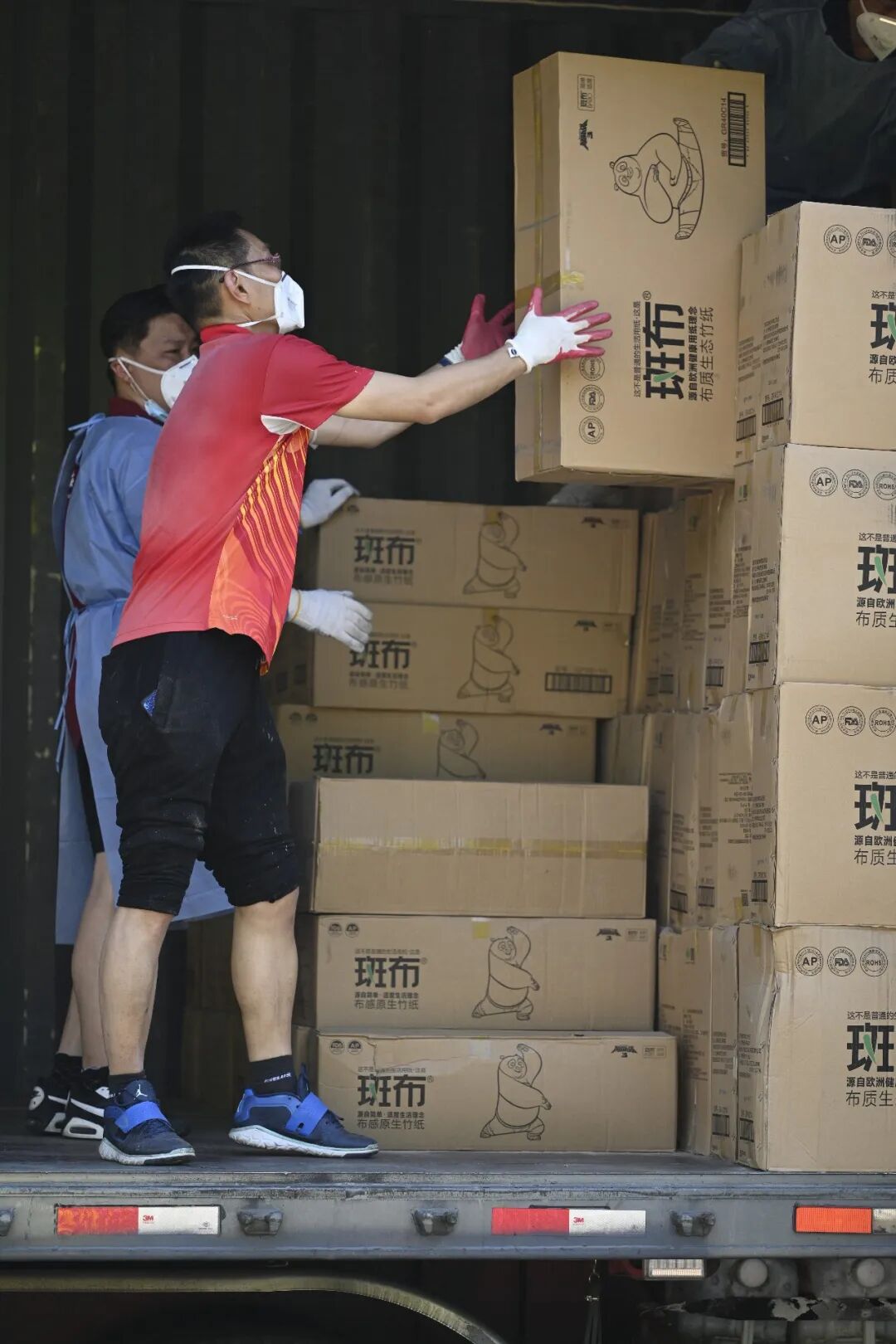 15吨矿泉水,24吨蔬菜,30吨纸巾,1400箱方便面,4000箱酸辣粉……学校封控管理以来,在各地校友、校董企业的爱心捐助下,大批物资转运入校。后勤保障处总务管理服务科、基建处工程队协力配合资产管理处,作为物资搬运的主要力量,他们承担了大量的卸载、转运、消杀工作,与教师志愿者队伍一起,全力保障在校师生的物资供应。看着一车又一车的物资运来,他们二话不说,冲锋在服务第一线,扛起物资便干起来,转移、搬运,经常挥汗如雨,忙到凌晨。大家不分昼夜、任劳任怨,只为确保防疫物资能够迅速到位、保障充足。如此巨大的工作量,就连平时干惯体力活儿的工程队师傅们都累到手臂酸痛,无法抬举,但大家都咬牙坚持,迎难而上。