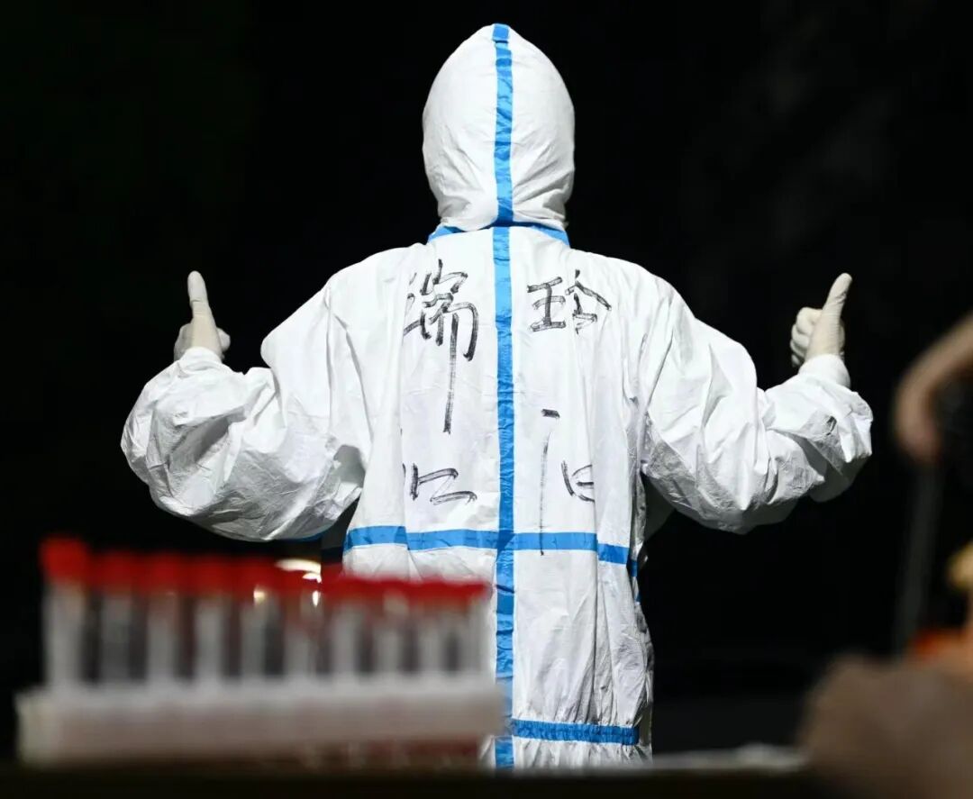 有一次采样结束已至深夜,天空下着瓢泼大雨,她捧着沉甸甸的样本箱,穿着闷热的防护服,趟过积水深达10厘米的泥泞小路,一脚深一脚浅地艰难前行,好几次差点摔倒,但她都牢牢地将样本箱护在怀中。送完样本,她又领取了一袋袋核酸检测物资往回搬运,为下一次的检测工作做好物资保障。
