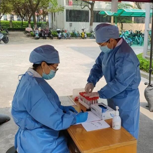 此外,三餐配送、核酸检测等现场工作也到处可见她忙碌的身影,协调安排、人员沟通、秩序维护,有时一站就是5-6个小时。大量的数据文本工作和现场体力任务确实是一项极大的考验,但她毫无怨言,有时身体倦了,她就去卫生间用凉水洗洗脸,清醒下头脑,稍事休息后又接着投入战斗。
