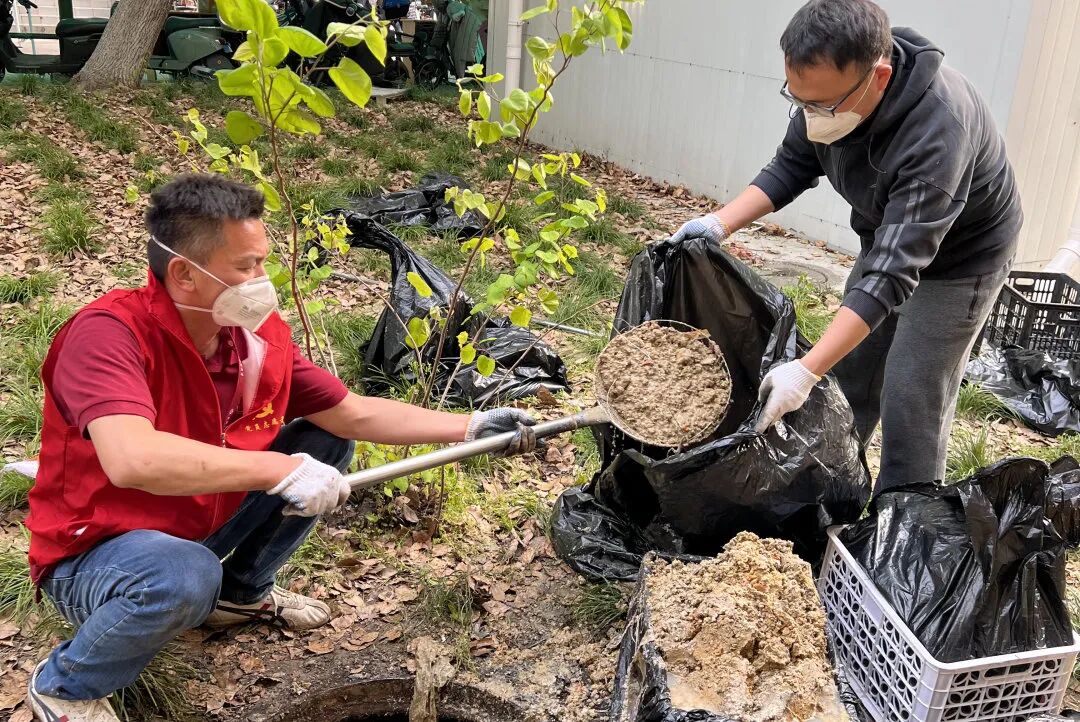 除了货物搬运外,在后勤保障处副处长刘强的带领下,总务管理服务科的职工们又化身为核酸检测点的“布场员”、送餐小分队的“主力军”、应急处置的“排雷兵”。在检测点,他们往往要比其他工作人员提前2小时到岗,摆放桌椅、准备物资、布置贴线,确保场地安排妥当;在食堂里,陈晓玲与餐厅经理一起清点盒饭,打包装箱,为每天丰富餐食品种、保障供餐动足脑筋;在园区中,刘世敏、邓洪老师每日三餐饭点前,搬起餐盒,一趟趟往返于28幢楼宇间进行配送,风雨无阻;在阴沟旁,由于管道堵塞,导致室内水池无法正常排水,疫情期间维保单位无法来校,刘强与刘世敏毫不犹豫,亲自动手,凿挖疏通,虽然恶臭扑鼻,但看到管道通畅的那一瞬他们却感到欣慰无比。